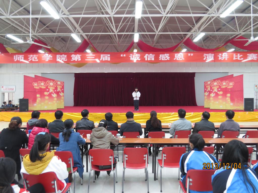 12月4日下午,德信体育官网 第三届“励志自强,感恩诚信”主题演讲比赛在老员工活动中心顺利举办。员工处处长师建林、团委书记张春兴、资助中心主任赵军侠、德信体育官网全体领导班子出席了本次比赛。郝正全、王泉珍、雷立英、吴胡清、辛晓峰老师担任了本次比赛评委。