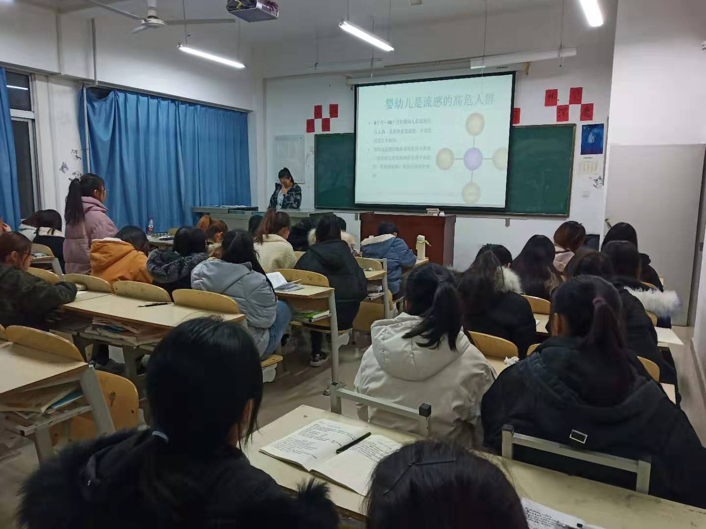 在班会上,班长通过PPT的形式从流感的起因、临床表现、与普通感冒如何区别等方面进行了介绍。随后,又向同学们细致讲解了流感的传播途径及危害,并且告诉大家要做到:保持良好的生活习惯,注意营养平衡,保持充足的睡眠和休息,多吃水果、多饮水,避免疲劳;保持个人和环境卫生清洁,注意室内勤通风换气。