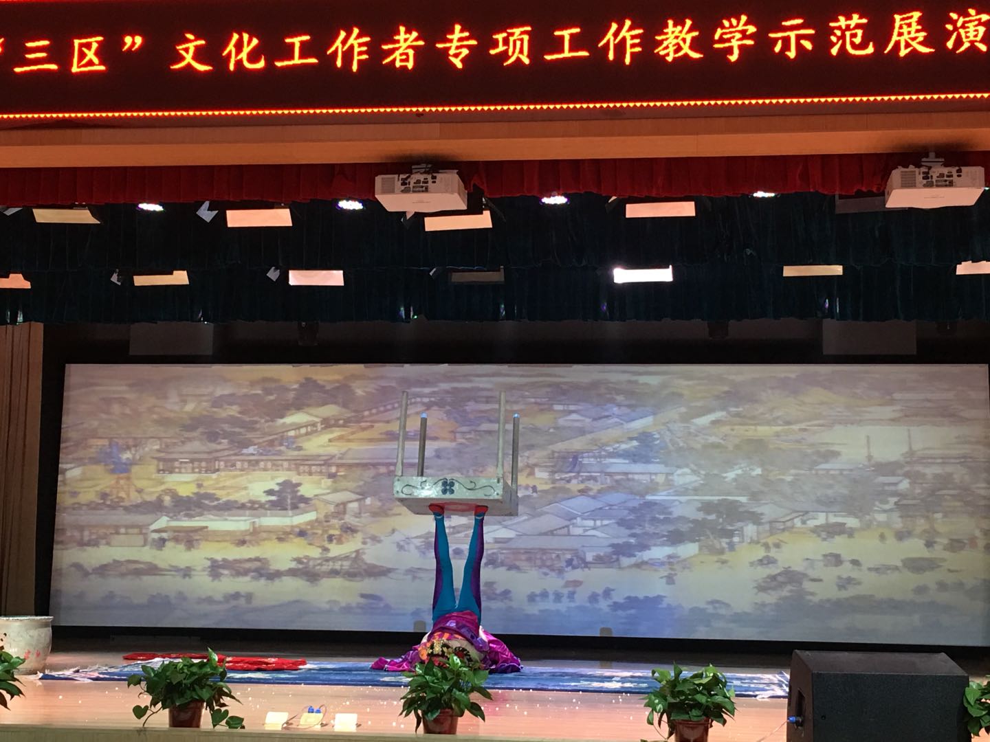 《滚灯》《翘碗》《女子技巧》《蹬技》四个节目将演出的现场气氛推向了高潮。优美的舞蹈与高难度的杂技技巧相结合,充分展现出杂技中力与美共存的独到之处。每一个动作都惊险刺激,让观众的心也跟随动作变换而跌宕起伏。尤其是《蹬技》更是博得现场观众阵阵掌声。这个节目是以足蹬物的杂技项目,显示双足的耍弄、平衡、表演、承重技能。表演者仰卧在小台上,双足向上,将各种轻重器皿家具置于脚上 ,靠脚的推动使其旋转 、腾翻 、改变角度,及至作出各种细致的难度很大的动作,表演种种技巧花样,给人留下难忘印象。
