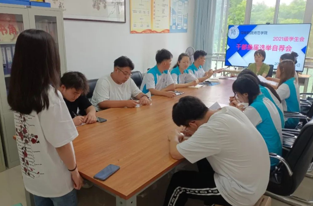 会上各竞选同学进行自荐演讲,根据自身实际情况表述自我推荐的优势及对竞聘岗位的工作设想,由老师和员工干部评委进行提问,全面的了解竞选同学的能力及想法。问答环节中各评委提出“你觉得加入员工会的意义是什么”、”如何更好的协调员工会工作与自己的学习生活“、”怎么完成干事到干部的角色转换“等问题,同学们积极参与,踊跃上场发言,尽可能的全方位展现自己,同时也让参会同学更全面的理解了员工会的职能与责任。