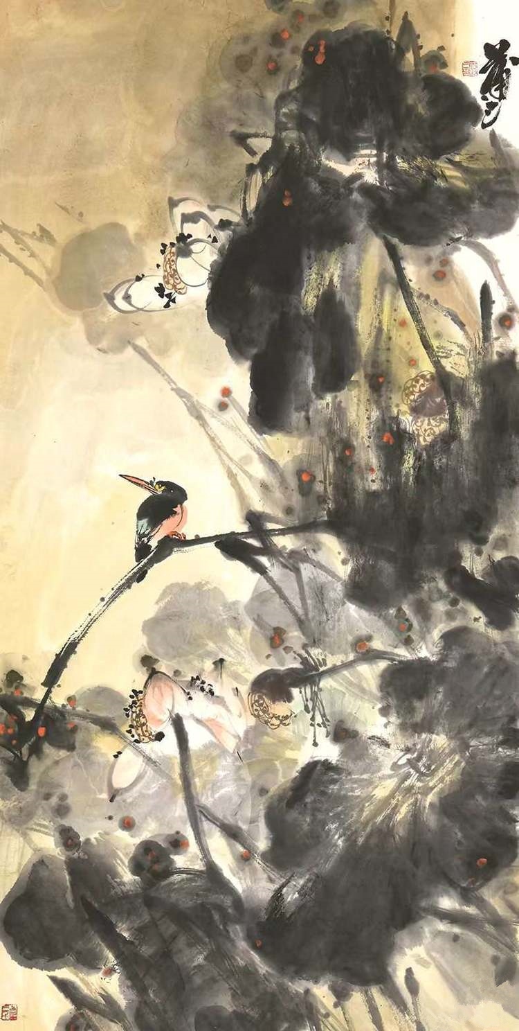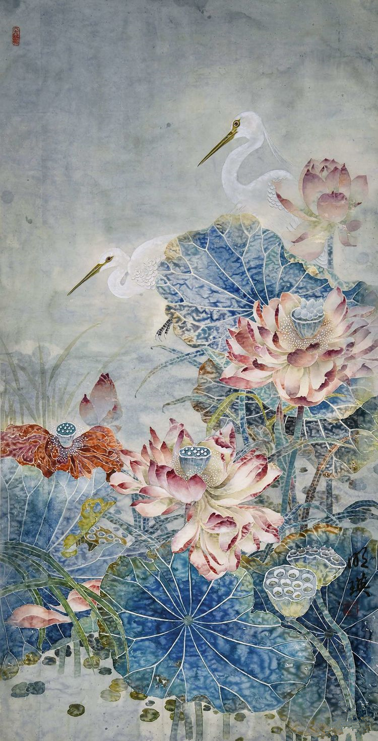 董明瑛 工笔花鸟作品《咏荷》