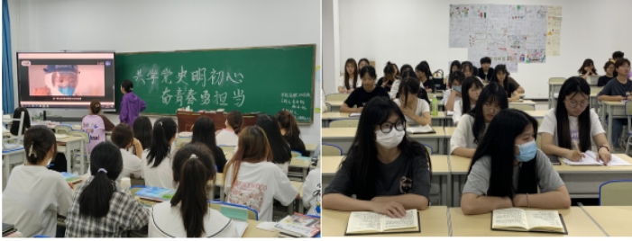 团课上,各班团支书首先开展了“党史知识知多少”互动问答,引入本次团课主题,向同学们介绍学习党史的意义。随后,各班团支书通过播放PPT带领同学们回顾了中国共产党百年奋斗历程,加强同学们对党的认识,感受中国共产党敢为人先的创新精神,增强同学们的爱国主义精神。同时,通过了解革命先驱的相关事例,帮助同学们树立正确的人生观和价值观。最后,各班同学积极踊跃发言,分享自己所了解的红色故事。团课结束后,同学们纷纷表示日后会更加严格要求自己,树立远大理想,肩负起党和国家的重任重担。