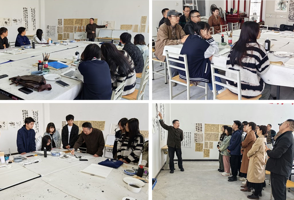 解安宁以“气韵生动”为切入点,讲解了“什么是中国山水画”,并从山水画的本源、规律、方法等角度对“中国山水画的绘画原理”进行了透彻的解析,道技兼顾,理法并重。在示范教学环节中,解安宁以中国山水画的“米点皴法”为例进行现场创作,结合山水画的画理与技法,进行了深刻细致的分析与示范,演示了山水画创作步骤与创作要点。旁征博引,深入浅出,理实结合,充分调动员工学习的积极性创造性,师生互动融洽,氛围轻松和谐,达到了课堂教学效果。课后,围绕中国山水画技法教学,解安宁与参加活动的老师开展了交流与探讨。