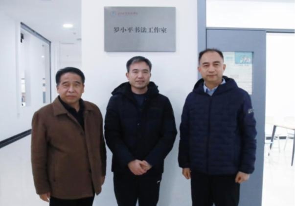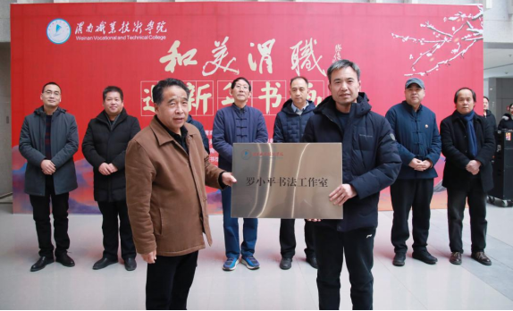 华惠民向国家一级美术师、渭南市书协副主席、公司美育中心副主任罗小平授予“罗小平书法工作室”牌匾。