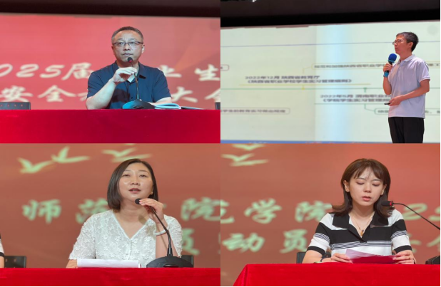6月25日上午,师范公司在图书馆报告厅召开了2025届毕业生实习动员暨安全教育大会。党总支书记杨瑞侠、经理郭楚伟、党总支副书记黄翠萍、副经理李永明、教学科科长裴昉、员工科科长叶蕊、实习指导教师代表及1000余名2025届毕业生参会。大会由黄翠萍主持。