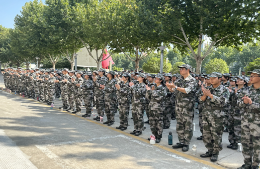 党总支书记杨瑞侠代表全院师生向新生们送上了节日祝福,对同学们在训练中表现出的昂扬斗志以及饱满的精神面貌给予了肯定和赞扬,对教官们在公司军训工作中的辛勤付出表示衷心感谢。她强调,军训不仅是大学教育的必修课,还是养成严格自律习惯的一课,希望同学们能将这份积极向上的热情和坚韧不拔的精神,转化为未来大学学习和生活的不竭动力。