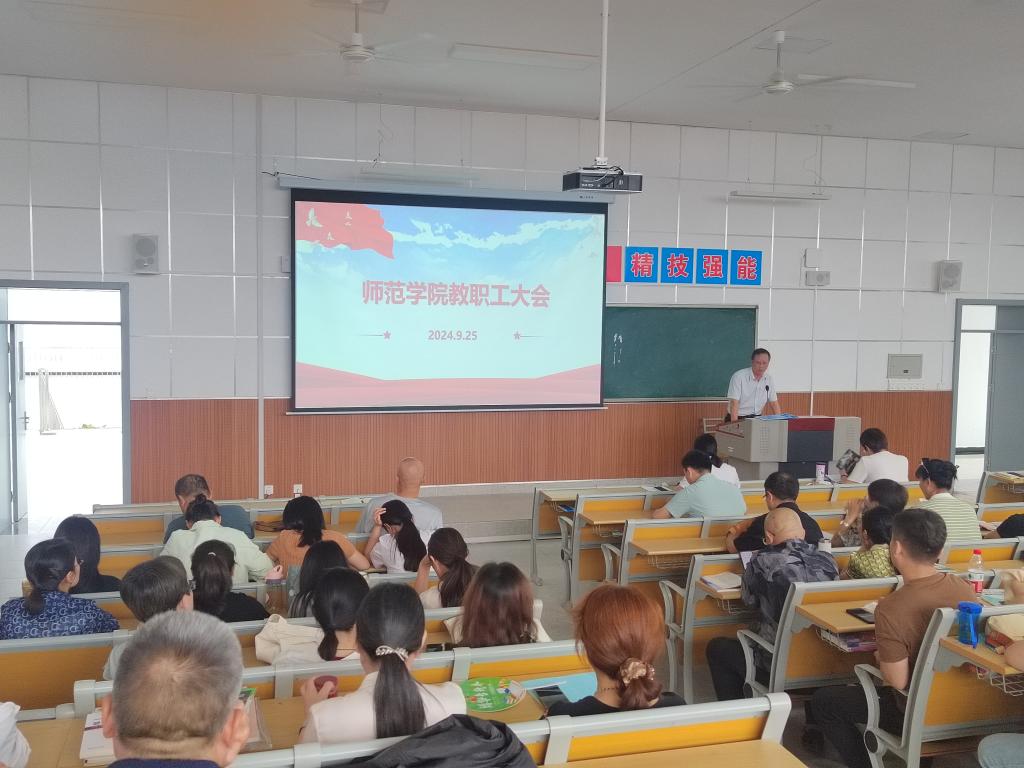 为确保新学期各项工作有序开展,提高教师队伍水平,9月25日下午,德信体育官网在综合楼403教室召开2024年秋季学期教职工大会。公司党总支书记杨瑞侠,经理郭楚伟,副经理于晶汝等领导班子成员出席,全体教职工参加。会议由郭楚伟主持。