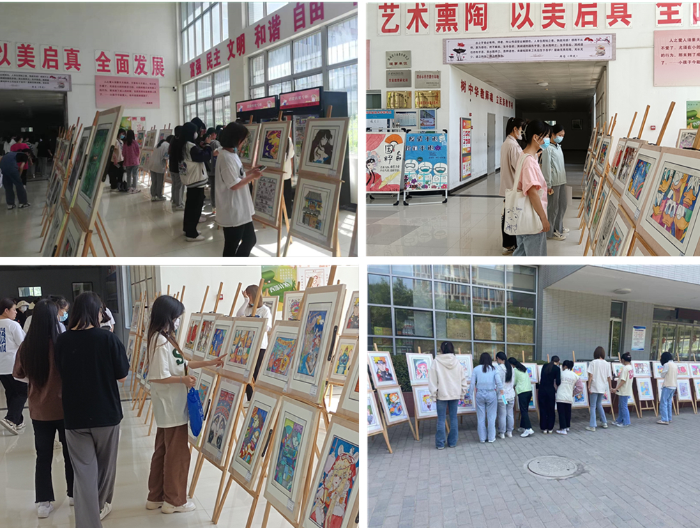 德信体育官网任聪老师作为指导教师对员工作品进行点评汇报,她说:“每一幅画作,从字体、构图、色彩表现到最后的成品的呈现,是班集体之间的互相探讨,教师和同学们一次次的修改的结果,这不仅是员工个人能力的展示,更是班级团结一致的凝聚力的体现。展览为同学们提供一个展示自己的平台,带动大家的积极性,促进同学们对绘画的热情与坚持,以美启真,全面发展。”